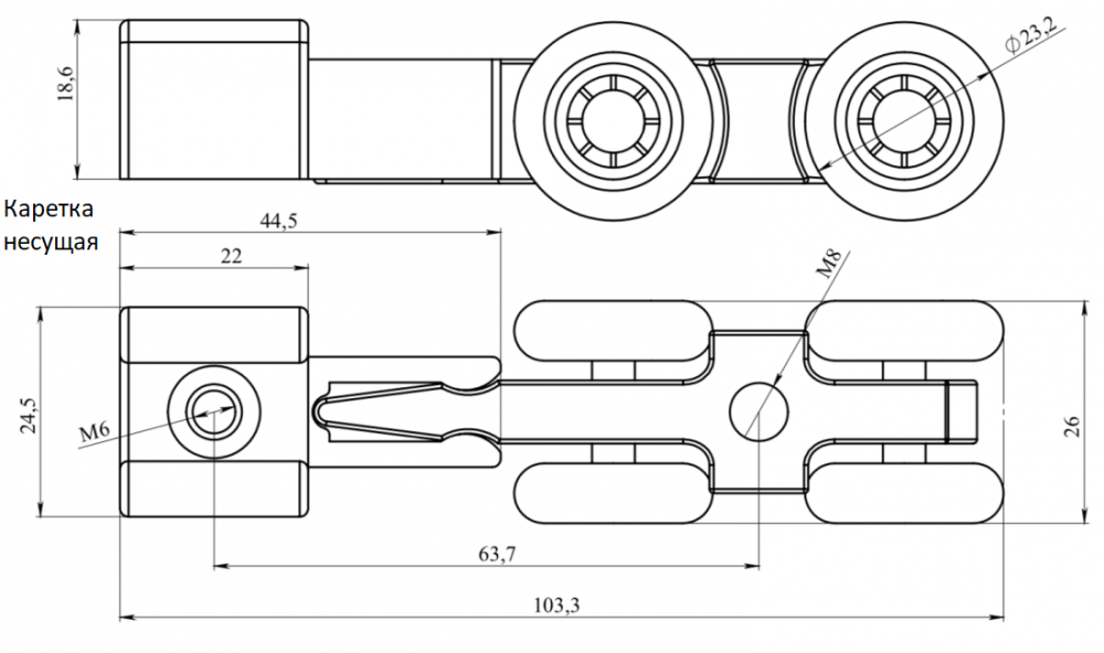 Ролик примечателен своей монтажной пластиной, которая соединяет картеку и дверное полотно.