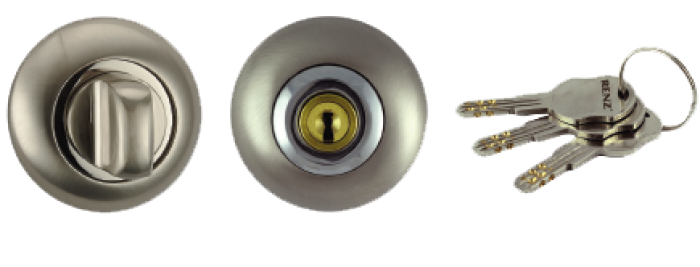Изделие имеет поворотную ручку-барашек с внутренней стороны и отверстие под профильный ключ - с наружной.