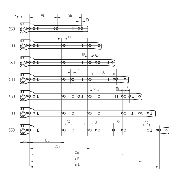 • Ручки на планке Ручки на планке