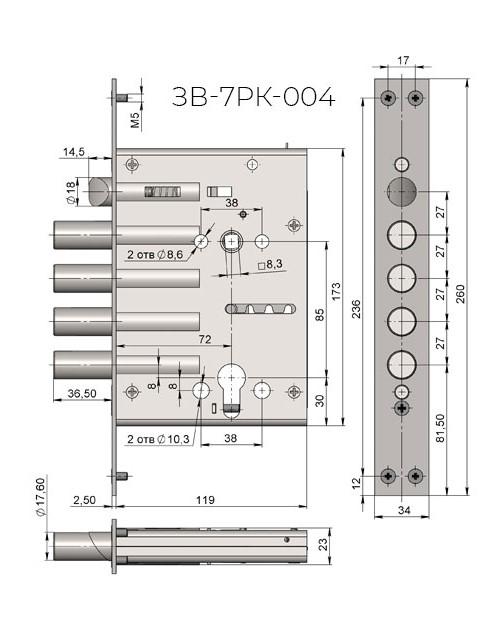 Замок ЗВ-7РК может заменяться без каких-либо сложностей на любую модель из линейного ряда «РК». Важно подчеркнуть, что выполнить замену замков данной серии Вы имеете возможность без необходимости доработки двери либо посадочных мест.