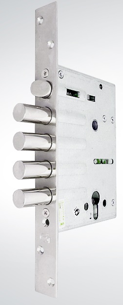 - Представленный замок оснащен засовом, который состоит из четырёх штырей, обладающих диаметром 17,6 мм.