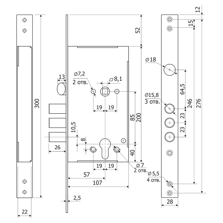 - Отверстия для крепления врезной броненакладки усилены втулками для защиты корпуса замка от деформации;