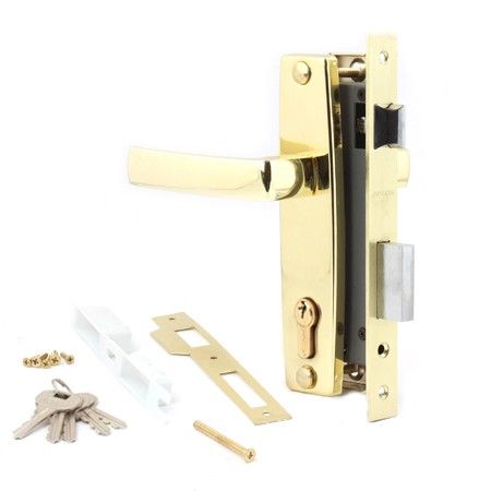 Замок укомплектован надёжными цилиндровым механизмом секретности 60мм с ключами английского типа, защелкой, которая открывается как ручкой, так и ключом.