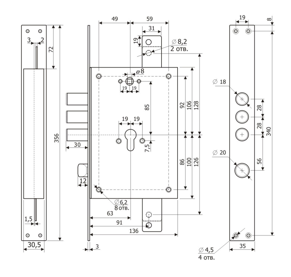 - Отверстия для крепления врезной броненакладки усилены втулками для защиты корпуса замка от деформации
