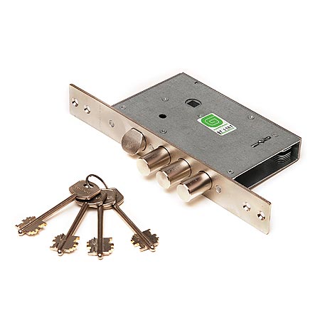 - Защита от вскрытия отмычкой – ложные пазы на стойке и сувальдах, увеличенная жесткость пружин сувальд
