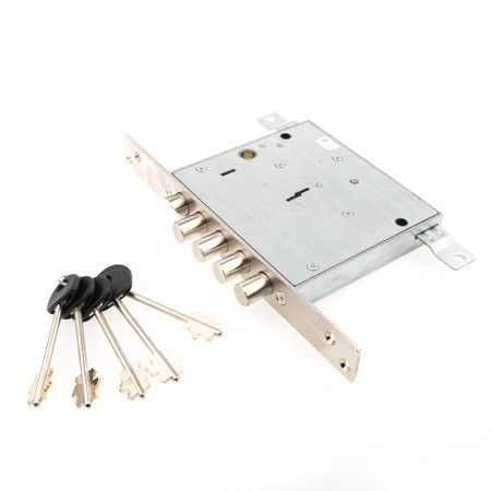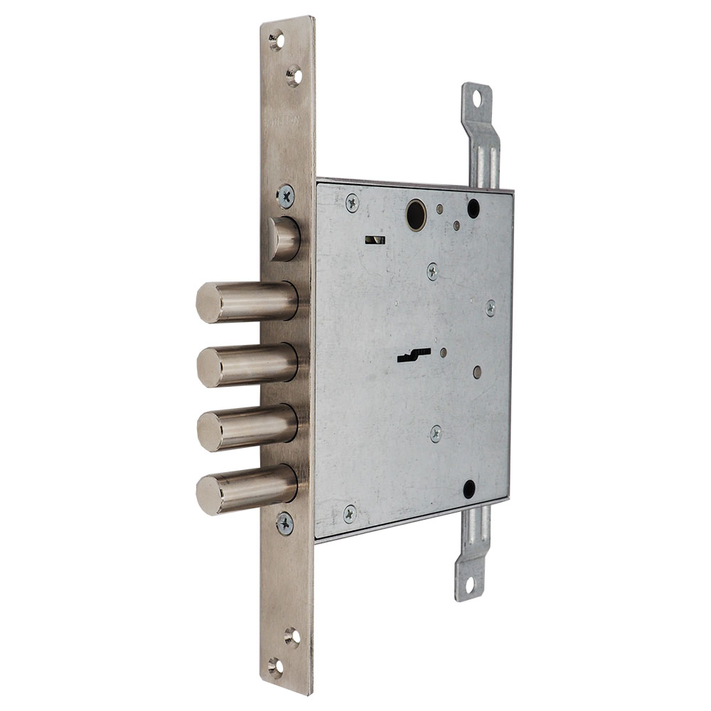 Замок запирает дверь четырьмя стальными ригелями диаметром 16 мм. Ригели выдвигаются из корпуса замка на 40 мм. В одном из ригелей расположен закалённый стальной стержень, обеспечивающий надёжную защиту от перепиливания. При помощи данного замка дверь запирается на четыре полных оборота (возможно неполное запирание двери на два оборота).