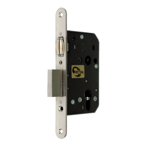 Замок имеет одно направление запирания - стальным прямоугольным ригелем, который выдвигается из корпуса замка на 24 мм. Запирание происходит на два оборота. Замок имеет роликовую защёлку, поэтому может быть применён в качестве основного запирающего устройства. Может быть установлен в двери различного назначения - как металлические, так и деревянные.