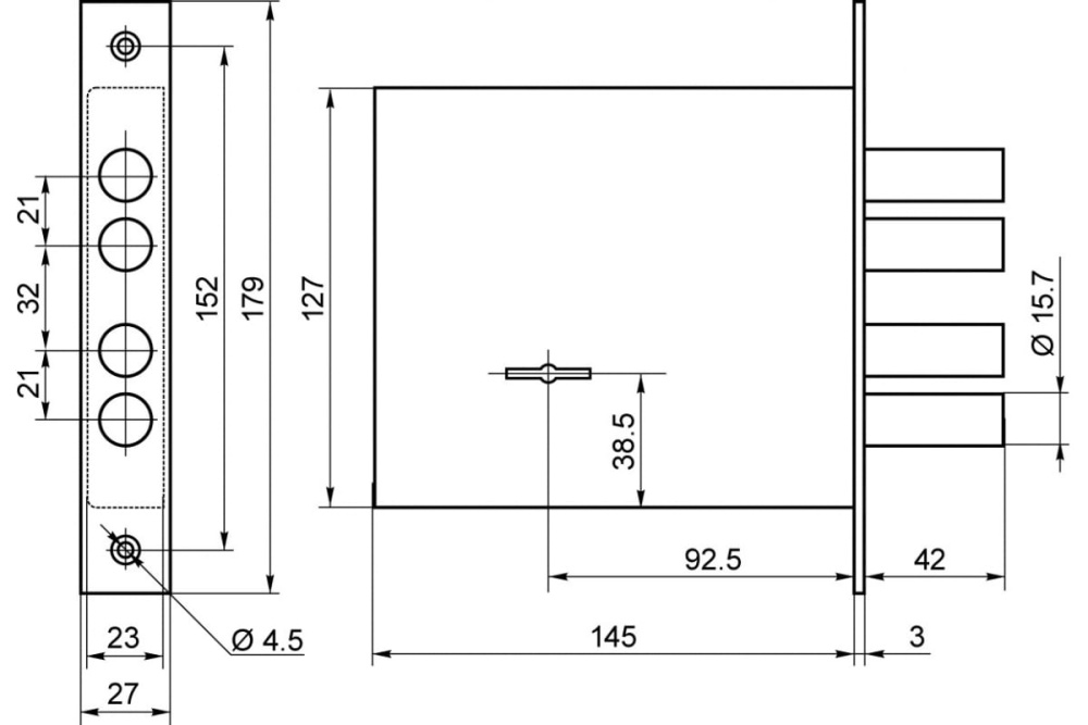 - 4 ригеля диаметром 15,7мм и вылетом 42мм.