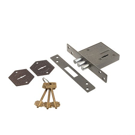 - Запирание поворотом ключа обеспечивает трехпалый ригель диаметром 12 мм;