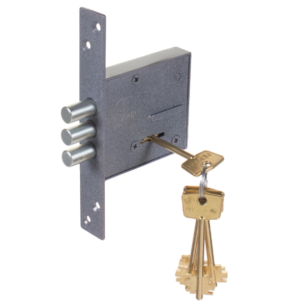 - Запирание поворотом ключа обеспечивает трехпалый ригель диаметром 12 мм;