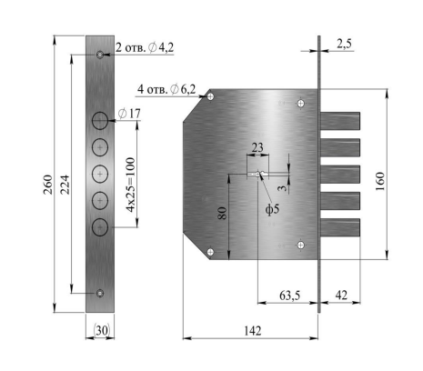- ширина лицевой планки 30 мм, высота — 260 мм.