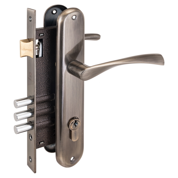 Замок имеет три круглых ригеля диаметром 12 мм и вылетом 20 мм, бэксет 45 мм, межосевое расстояние 85 мм. Цвет - бронза. Упаковка - фирменная коробка.