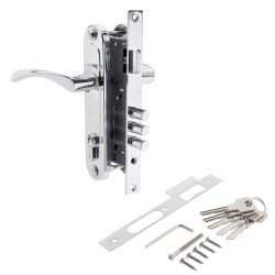 - Основным преимуществом новой линейки врезных замков является их конкурентоспособная цена за счёт комплектации недорогими алюминиевыми ручками;