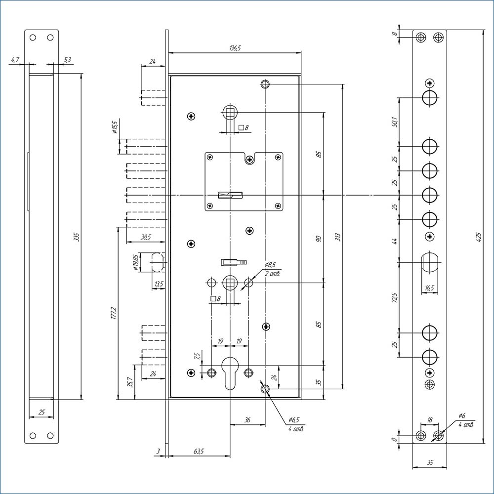 Сувальдный механизм дополнительно укреплен защитной пластиной из марганцевой стали толщиной 2 мм.