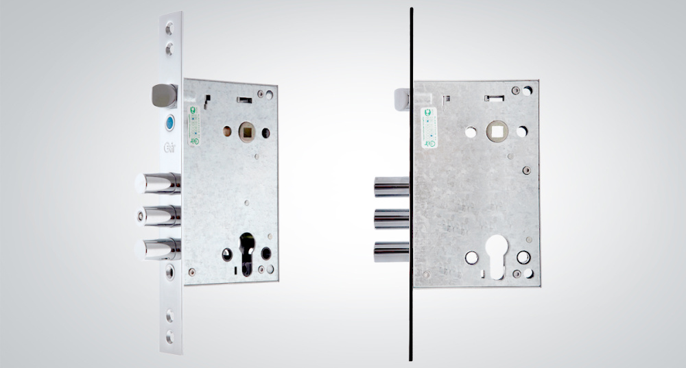 В среднем ригеле замка находится вращающийся элемент, выполненный из закаленной стали. Он существенно затрудняет перепиливание ригеля и увеличивает надежность замка.
