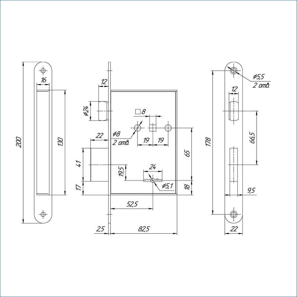 Замок комплектуется стальной лицевой планкой, а также пятью латунными ключами с пластиковой головкой.