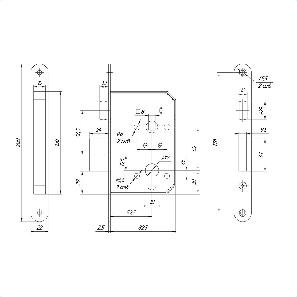 Модель ЗВ4 401.0.0 комплектуется стальными лицевой и запорной (ответной) планками, а также винтом М5Х60 для крепления цилиндрового механизма.