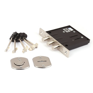 Модель комплектуется лицевой планкой из высококачественной стали, а также двумя декоративными накладками на ключевую скважину из нержавеющей стали. Замок комплектуется тремя латунными ключами с пластиковой головкой.