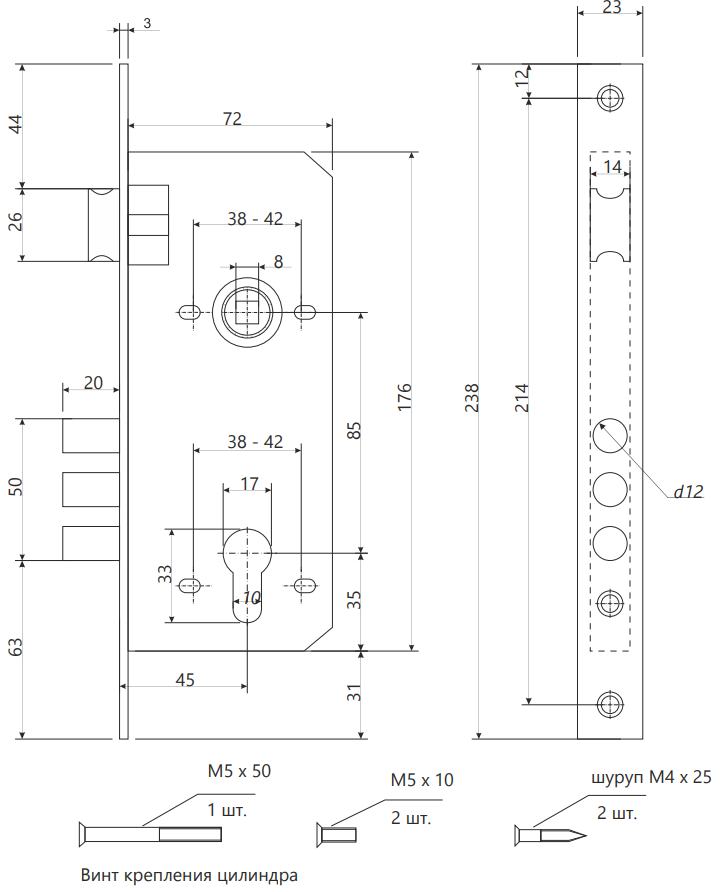 - Поворотная защелка удерживает дверь в закрытом состоянии без использования ключа.