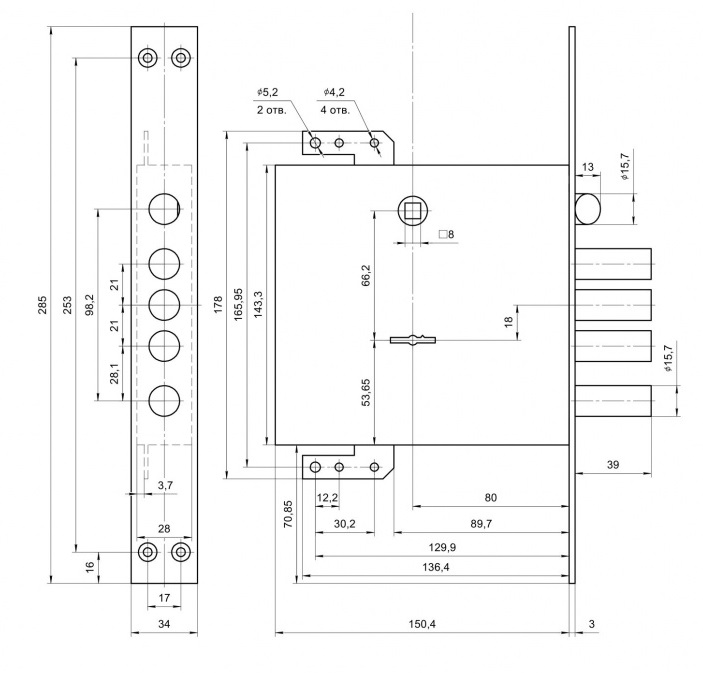 - Количество ригелей - 4 шт, с вылетом 39.5 мм и диаметром 15.7 мм.