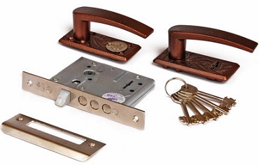 Фурнитура к замку: Накладка литая с фалевой ручкой «медный антик».