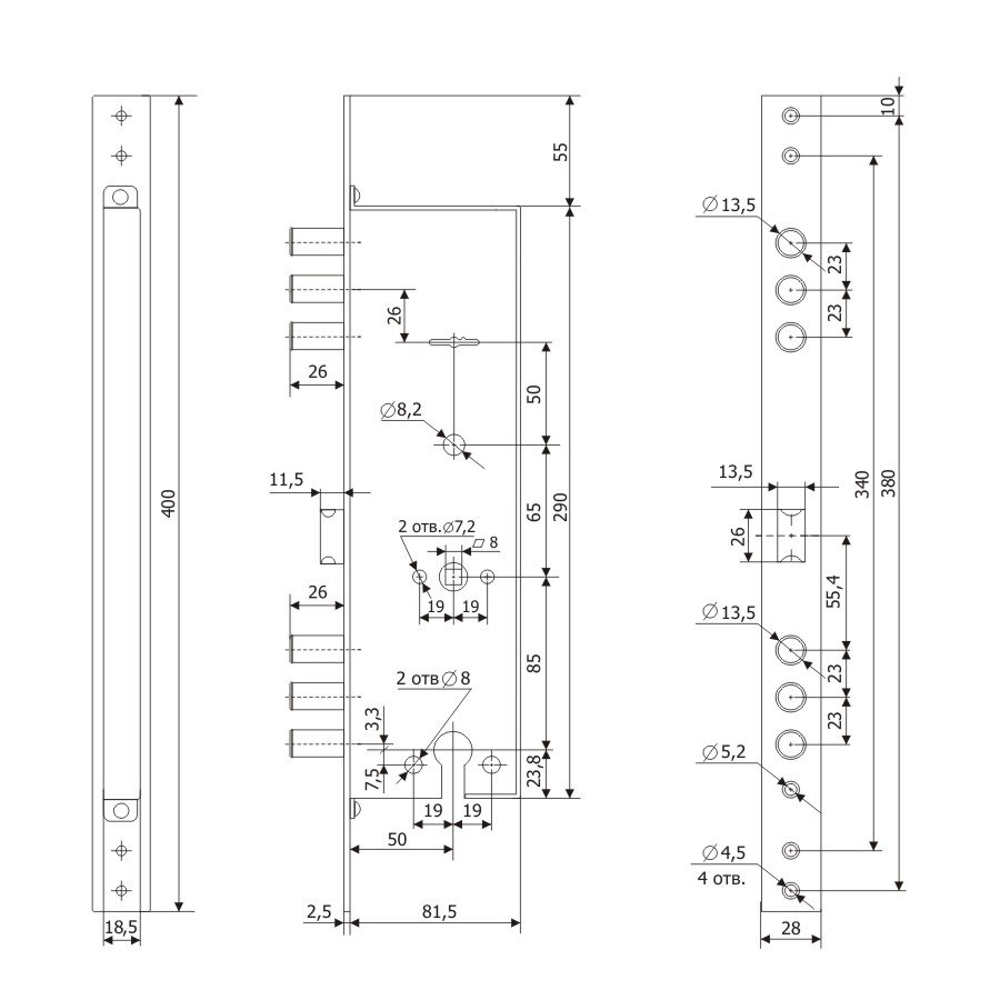 - Вертикальный привод - возможность запирания двери на три стороны.