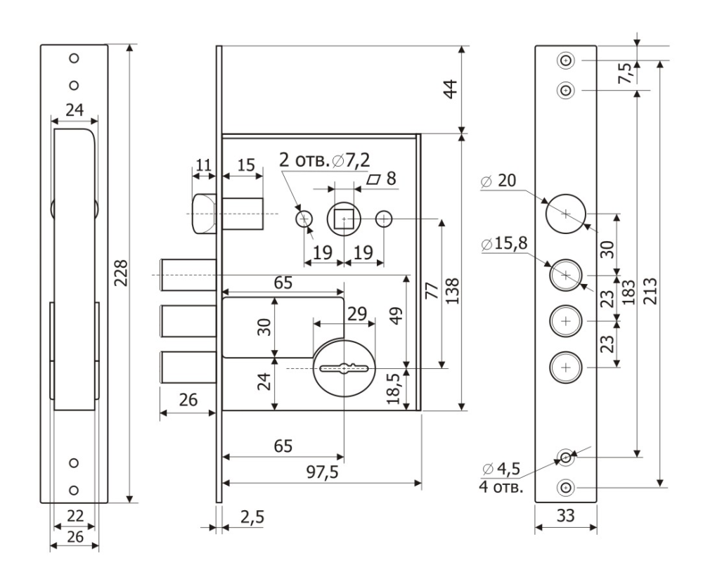 - Защита от взлома – при полностью выдвинутых ригелях замка, 30% их длины остается в корпусе замка, усилена конструкция засовов;