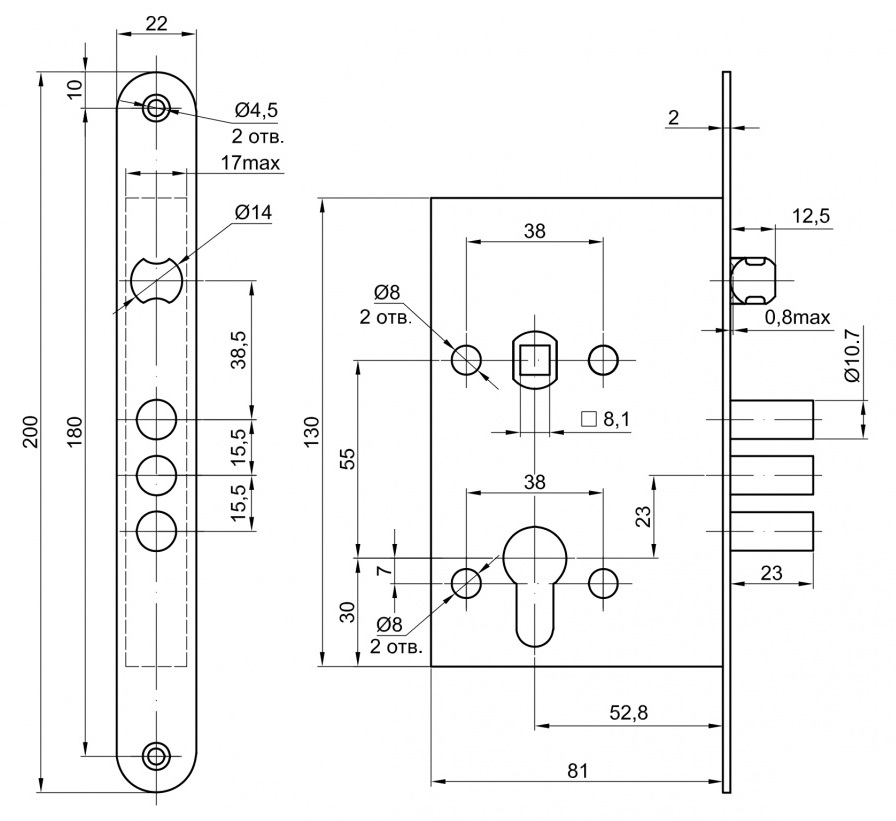 - Дверь может быть закрыта на защелку и открыта с помощью фалевой ручки при открытом засове замка.