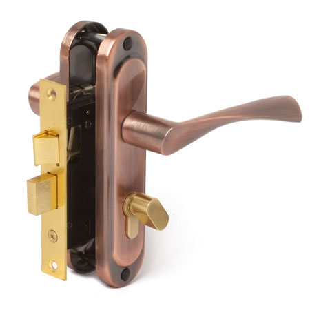 Замок поставляется в сборе с ручками и цилиндром из алюминия. Гальваническое покрытие ручек и цилиндра. В комплекте 5 ключей английского типа.