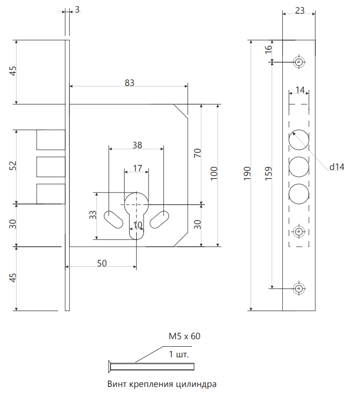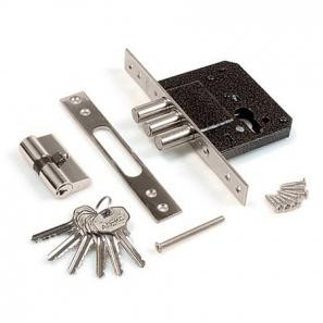 Замок врезной цилиндровый универсальный Apecs 91/60-CR общего назначения, с тремя круглыми ригелями диаметром 14 мм и вылетом 30 мм, бэксет 50 мм в комплектации с ответной планкой, накладками на ключевины, а также цилиндровым механизмом "ключ-ключ" размером 60(30/30). Цвет - хром. Класс взломостойкости 2.