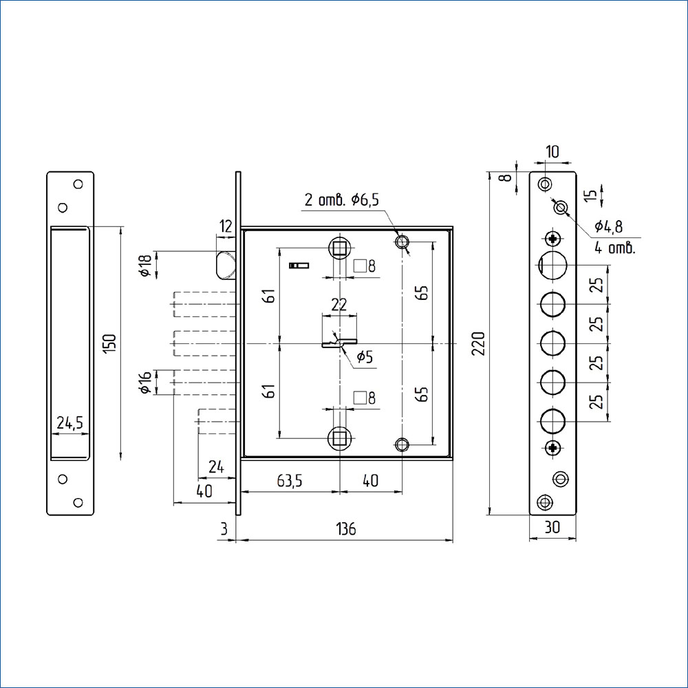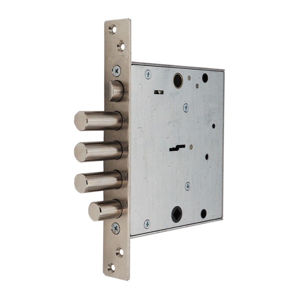Замок запирает дверь тремя стальными ригелями и задвижкой. Диаметр ригелей засова и задвижки — 16 мм. Ригели выдвигаются из корпуса замка на 40 мм и 24 мм соответственно. В одном из ригелей расположен закалённый стальной стержень, обеспечивающий надёжную защиту от перепиливания. При помощи данного замка дверь запирается на четыре полных оборота (возможно неполное запирание двери на два оборота), а также на ночную задвижку (с внутренней стороны двери).