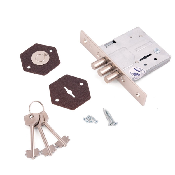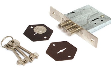 Замок открывается и закрывается изнутри и снаружи ключом. Покрытие корпуса — цинковое. Покрытие лицевой планки — никелевое, ответной планки — цинковое. Замок имеет защиту от высверливания. Изготовлен из высокопрочных материалов. Имеет защитное покрытие.