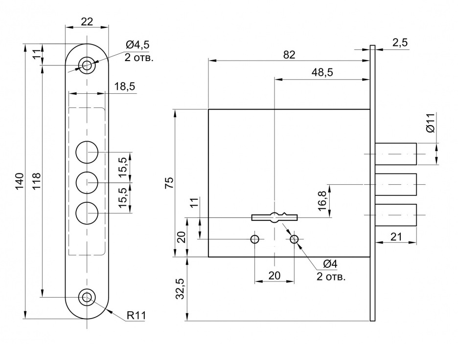 - Габаритные размеры — 82х75х19мм;