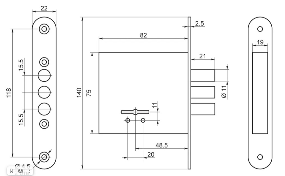 - Габаритные размеры — 82х75х19мм;
