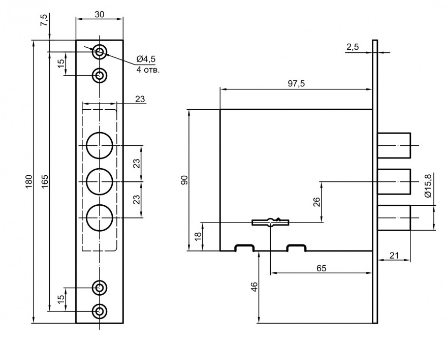 - 3 ригеля диаметром 15,8мм и вылетом 21мм
