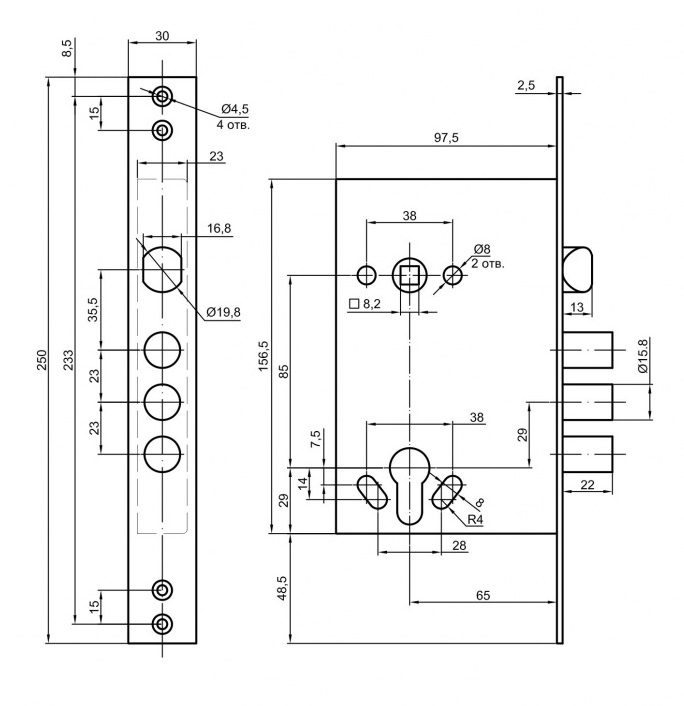 - Удаление ключевого отверстия (Backset) 65 мм.