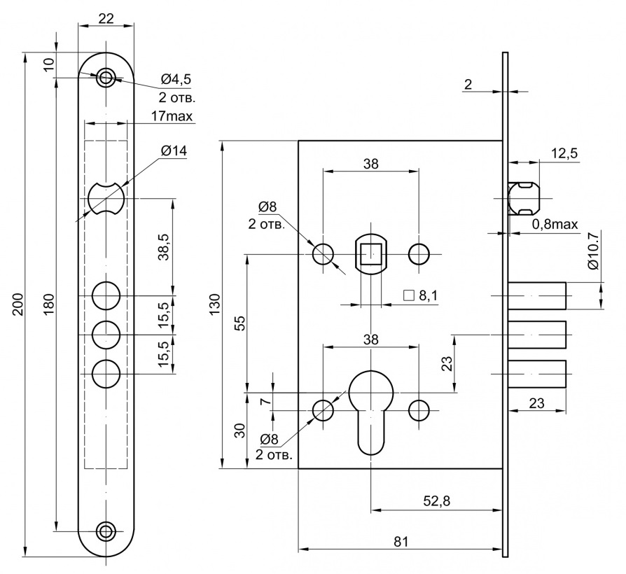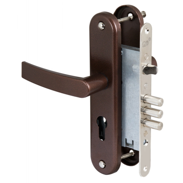 - Дверь может быть закрыта на защелку и открыта с помощью фалевой ручки при открытом засове замка.