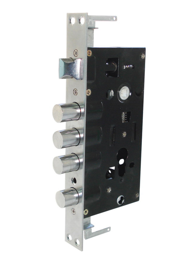 Автоматический замок позволяет быстро закрыть и открыть двери, не доставая ключ. Поднятие ручки вверх (с внешней стороны) автоматически закрывает дверь на все ригеля. Опускание ручки вниз (с внутренней стороны) - автоматически откроет дверь.