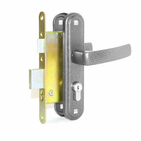 - Комплектация: замок, цилиндровый механизм 70 мм, ответная планка, ручки РФ1-55.05, комплект крепежа.
