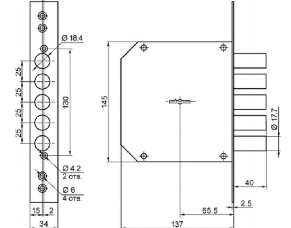 - Подходит для установки в гаражные ворота, калитки, а также металлические двери с правым открыванием.