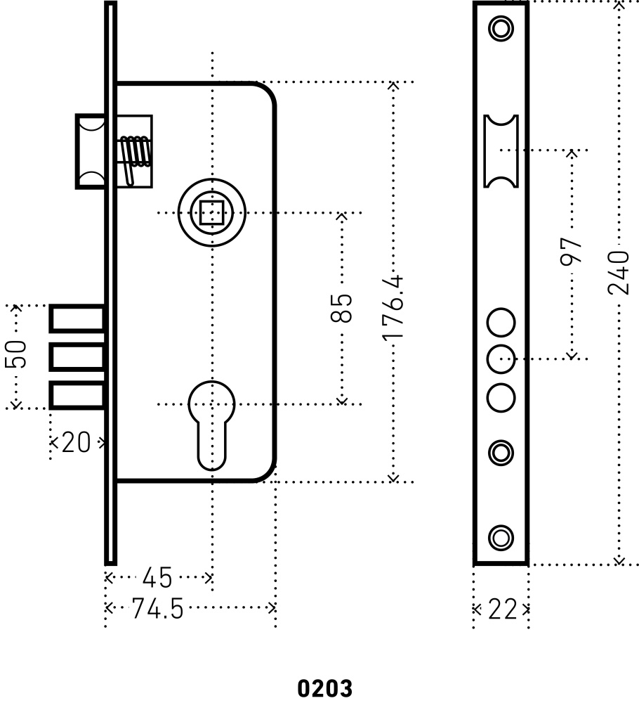 Замок имеет три круглых ригеля диаметром 12 мм и вылетом 20 мм, бэксет 45 мм, межосевое расстояние 85 мм. Цвет - бронза. Упаковка - фирменная коробка.