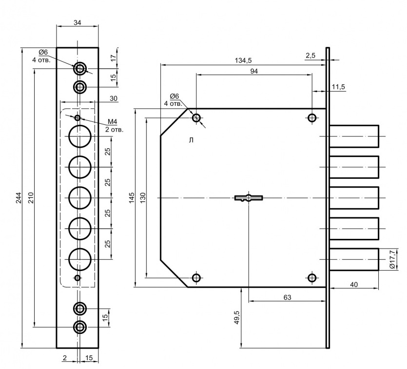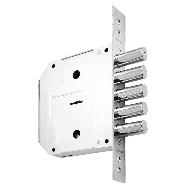 - Дверной замок с 5 ригелями, диаметром 17.7 мм и вылетом 40 мм.