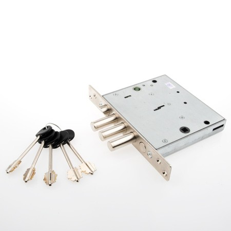 Замок запирает дверь тремя стальными ригелями и задвижкой. Диаметр ригелей засова и задвижки — 16 мм. Ригели выдвигаются из корпуса замка на 40 мм и 24 мм соответственно. В одном из ригелей расположен закалённый стальной стержень, обеспечивающий надёжную защиту от перепиливания. При помощи данного замка дверь запирается на четыре полных оборота (возможно неполное запирание двери на два оборота), а также на ночную задвижку (с внутренней стороны двери).
