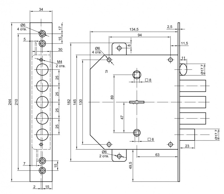 - Ширина лицевой планки 34 мм, высота — 250 мм.