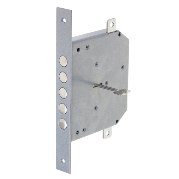 - Запирание поворотом ключа обеспечивает ригель, имеющий 5 пальцев диаметром 17 мм с вылетом 42мм.