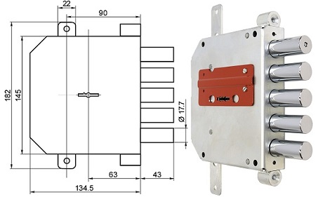 - 5 ригелей с вылетом 43мм и диаметром 17.7мм